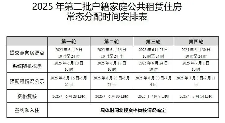 2025年6月23日起,由各区住房保障部门按照规定对获预配租房屋的分配对象进行资格复核。